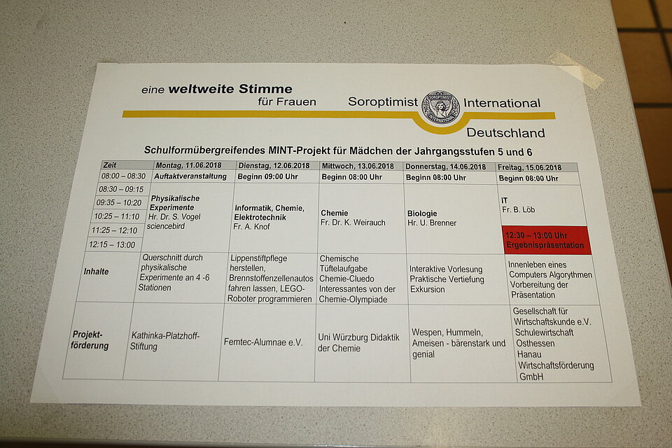 Mint Projekt des Soroptimist Club gemeinsam mit Evonik und der Hohen Landesschule,